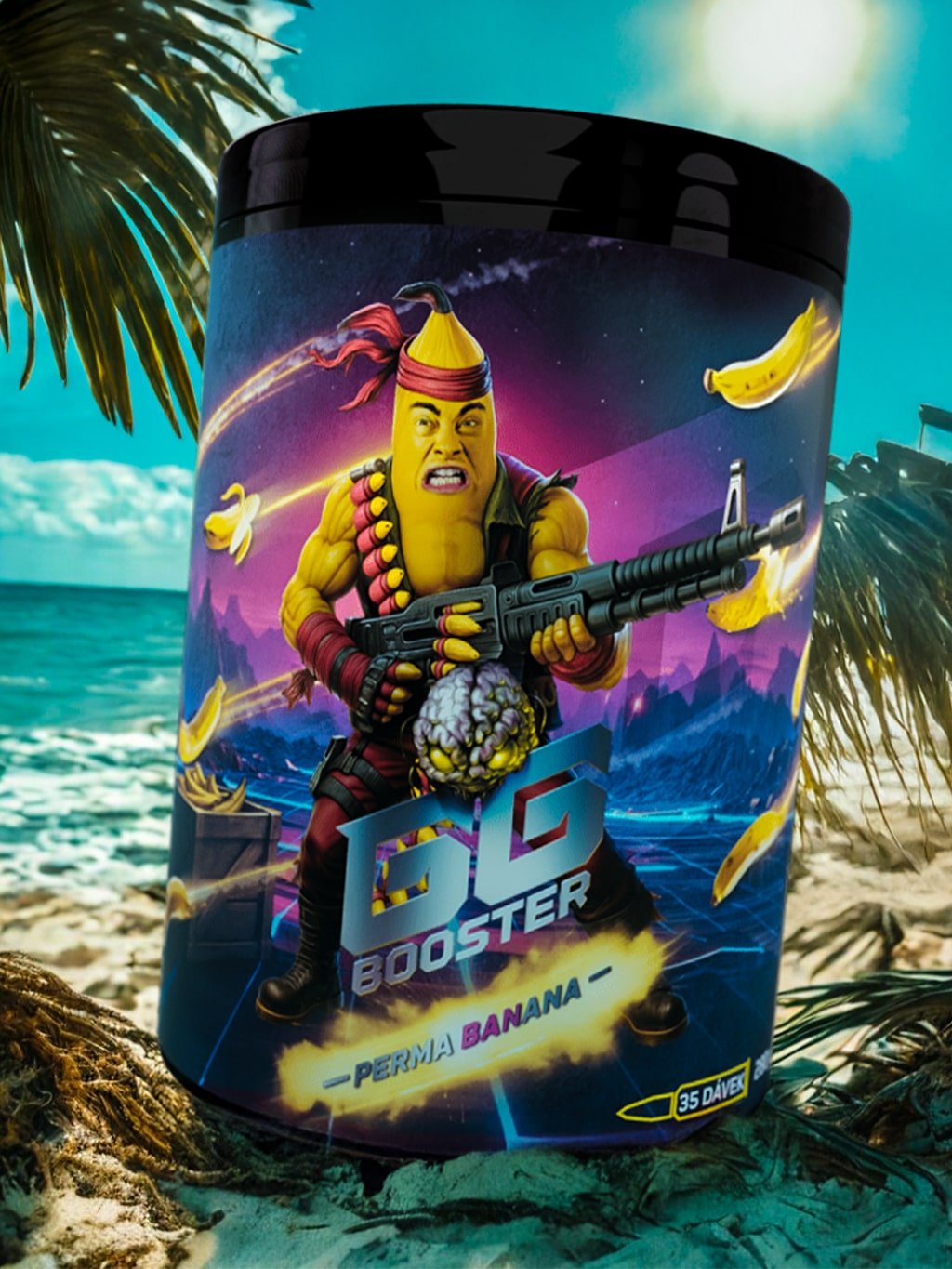 GGBOOSTER s osvěžující příchutí banánu! Roztoč si svůj herní motor s naší limitovanou edicí GGBOOSTERU Perma BANana! Plný svěží chutě banánu - je to jako bys si naletěl do letního ovocného ráje přímo z respawnu! Zaban(án)uj každýho, kdo se bude snažit Tě o tvůj banán připravit!